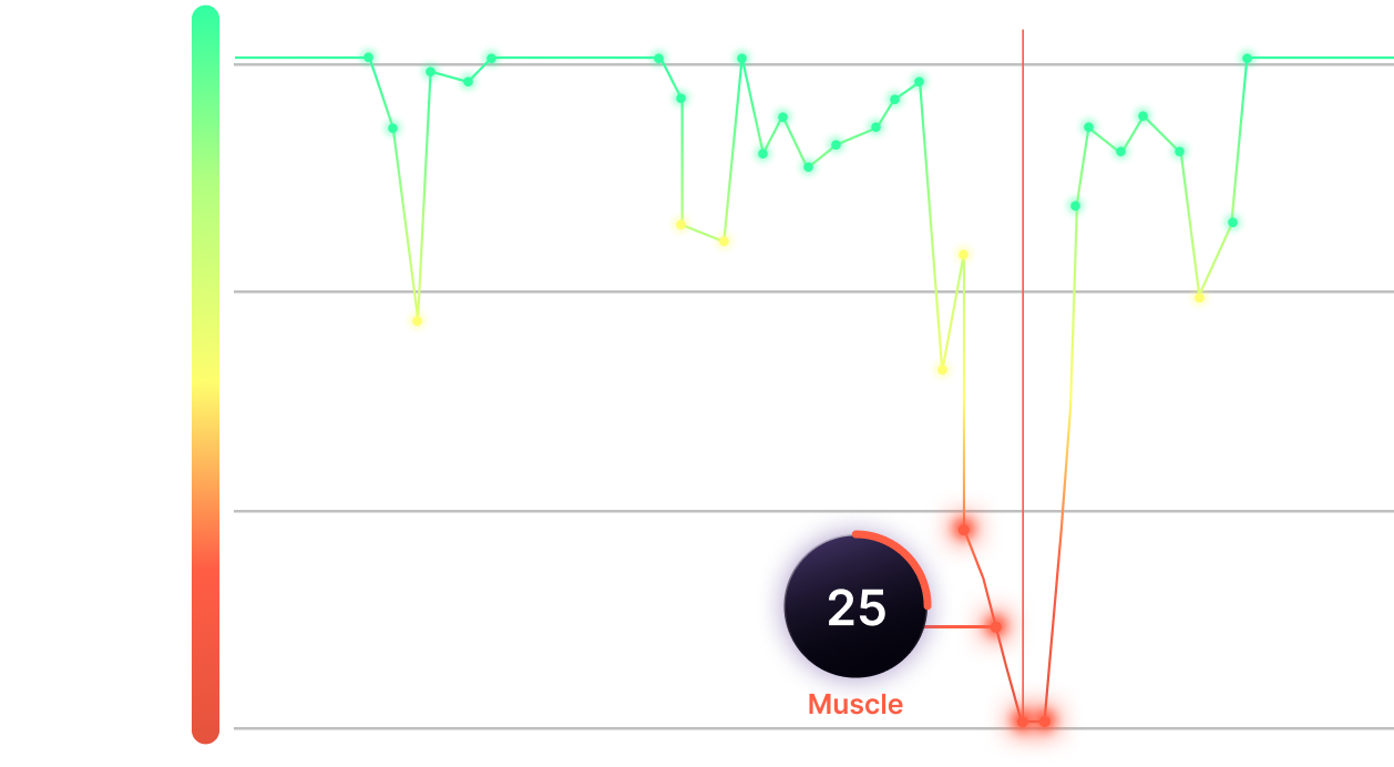 VISIONARY analyzes thousands of data points, and outputs a daily color-coded score, alerting athletes before they get injured.